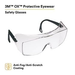 3M™ 500 Protective Eyewear, Anti-Scratch/Anti-Fog, Clear Lens, Plastic Frame, Polycarbonate Lens, ANSI Z87.1-2015