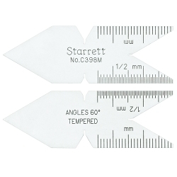 Starrett® C398M Center Gage, Graduations: mm and 1/2 mm, 60 deg, Tempered Spring Steel, Satin Chrome