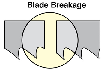 - Improper Blade Break-in - Improper break-in leads to chipped teeth which will shorten blade life as well as possibly lead to tooth strippage. Follow proper blade break-in procedure from the blade supplier.