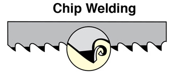 - Tooth jammed in cut – When this occurs, do not enter a new blade in that cut. For example, when teeth strip there is a good chance that remnants of the teeth are left in the cut. If a new band saw blade is installed and then fed back into the same cut, it is likely that these remnants, which are as hard as the new teeth, will cause the new blade to strip teeth as well. Its always best to start a new cut or if you must cut at the same position, turn the material over and try coming in from the opposite side.