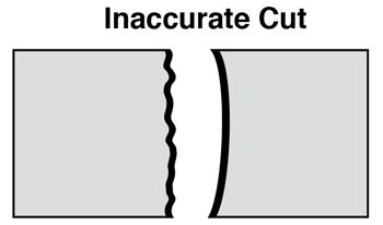 - Over feeding - Check cutting recommendations. As noted previously, blade speed, feed pressure and feed rate are all required to be in balance for the particular material being cut. If any or all of these are not near recommended specifications, then crooked cutting will most likely result.