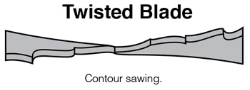 - Guide arms spread too far apart - Adjust guide arms closer to material. Without proper blade tension, the band saw blade will bow and may twist, causing both breakage and crooked cuts.